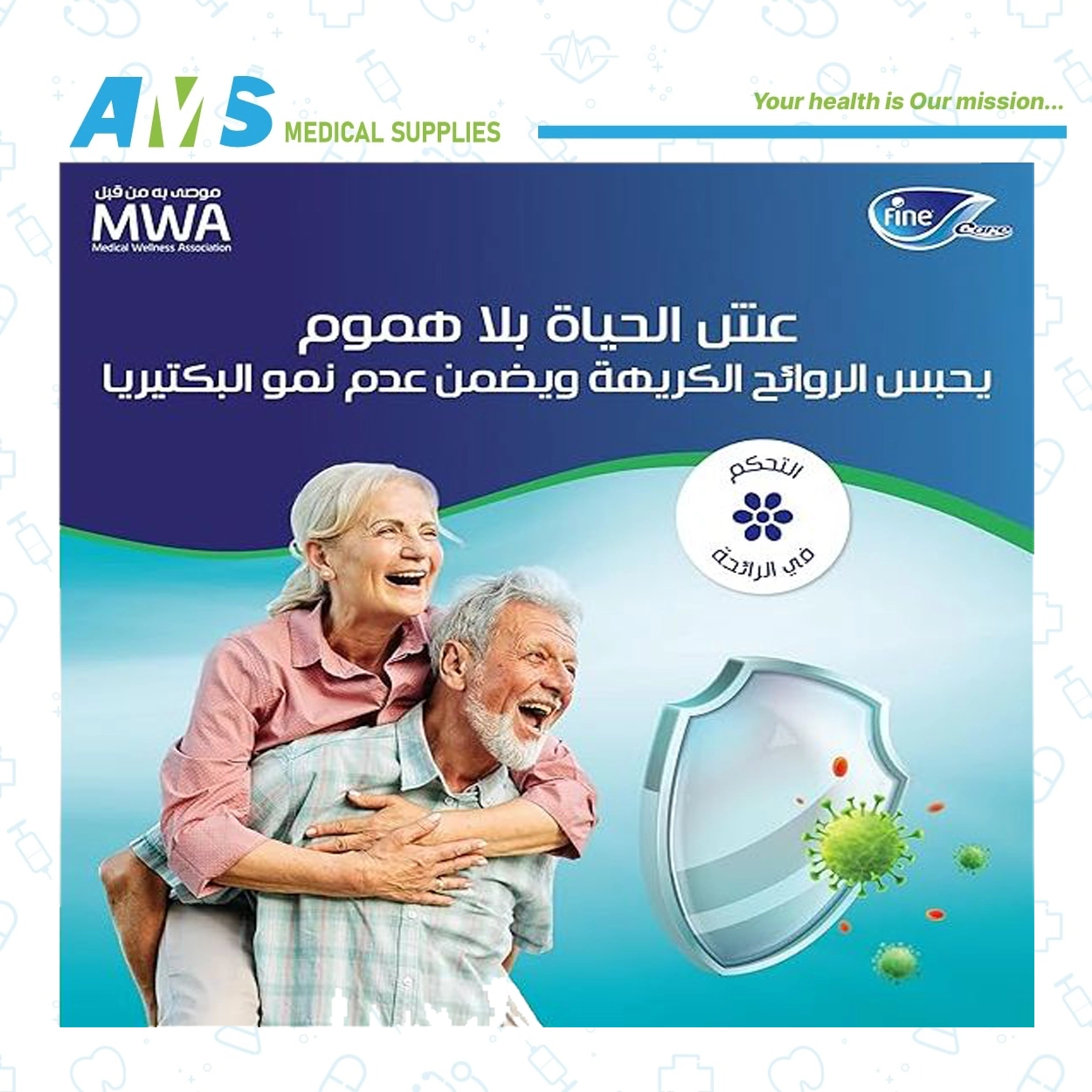 • حفاضات فاين لكبار السن بطبقة خلفية من القماش توفر الراحة المطلقة دون إصدار أصوات مزعجة أثناء الحركة