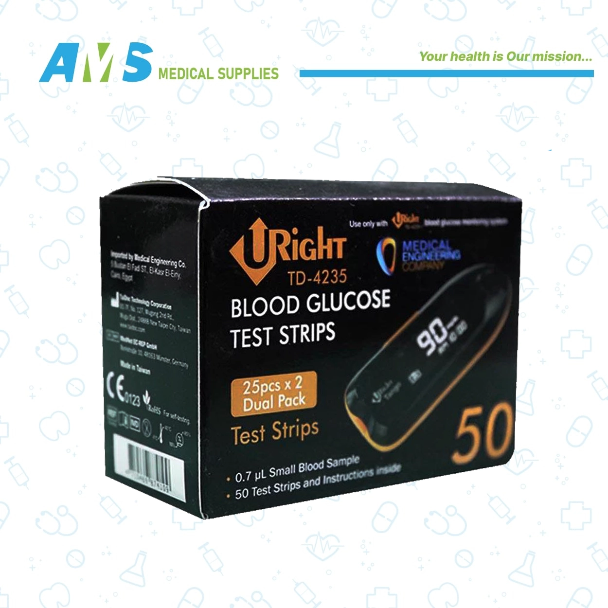 شرائط سكر يو رايت مع جهاز السكر يسمح الاختبار اليومي بتقييم مستوى الجلوكوز في الدم، مصمم بدقة لتقديم مستوى أعلى من الخدمة، يساعدك في الحفاظ على السكر ليكون تحت السيطرة آمن جدًا ونتائجه مضمونة