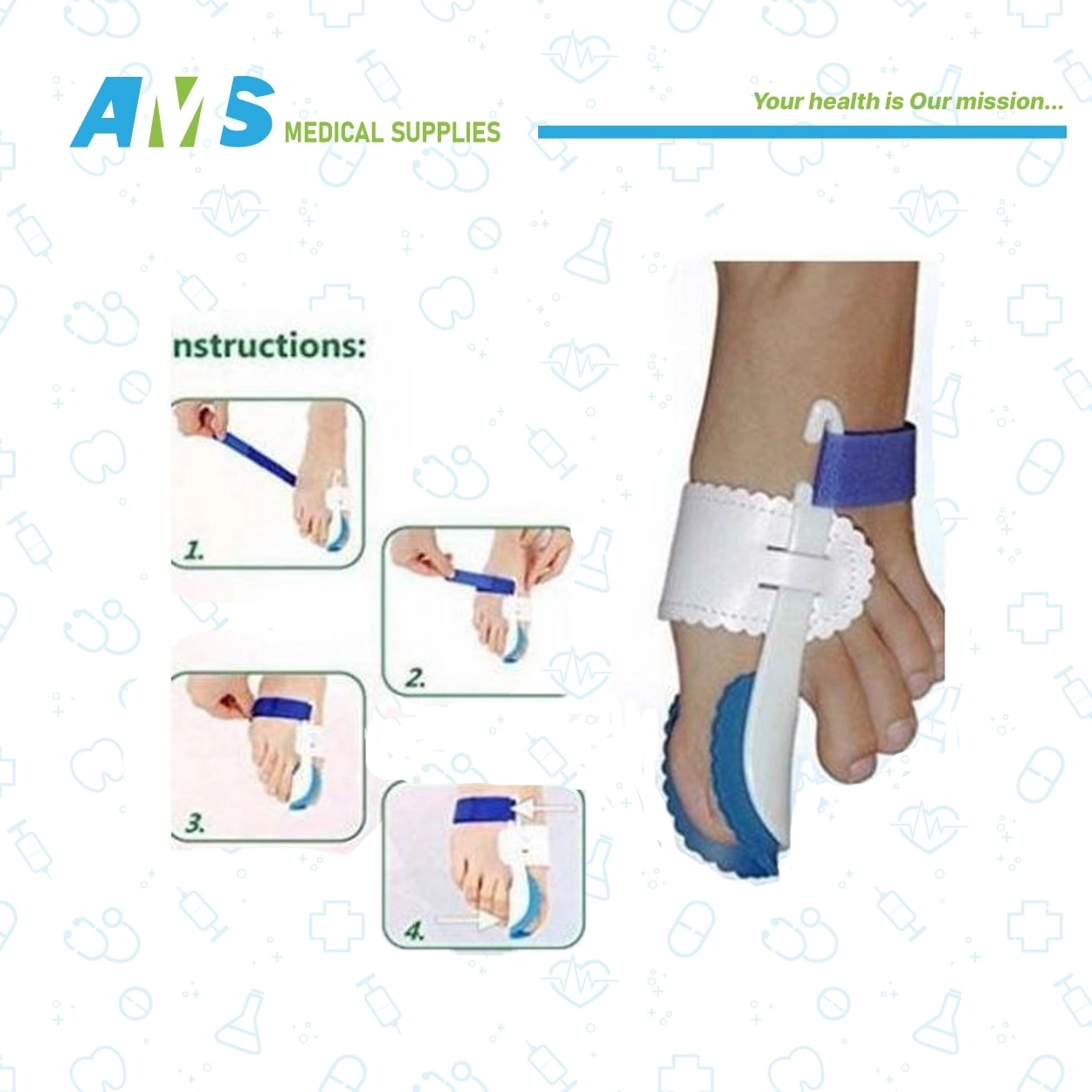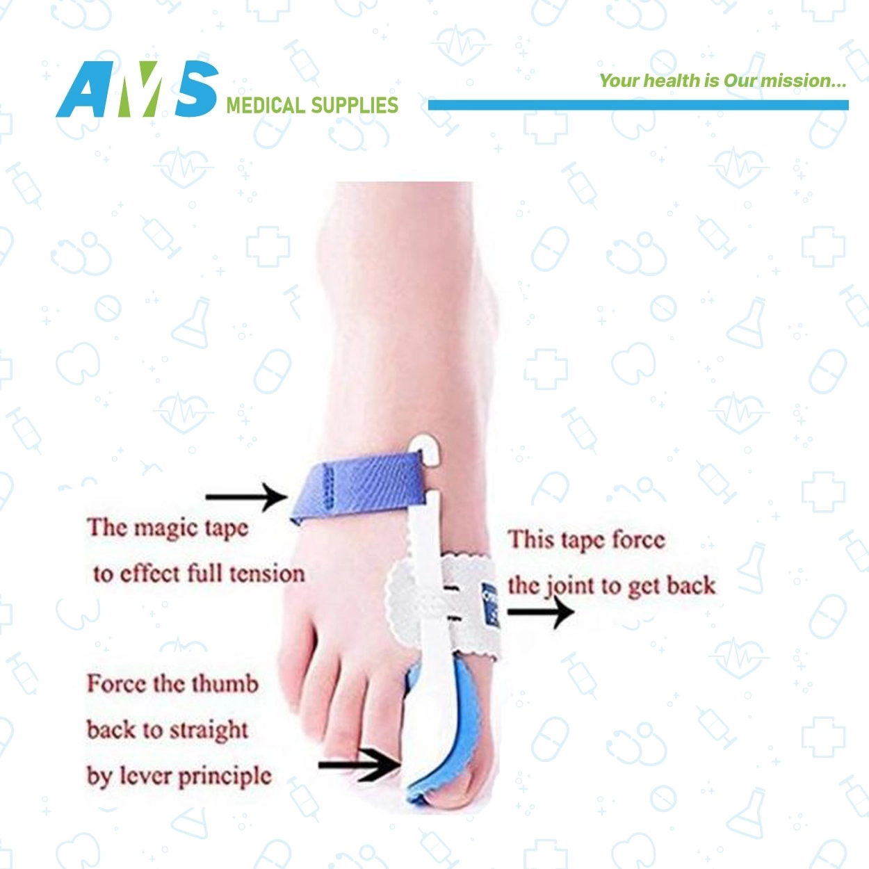 تستخدم جبيرة تصحيح اصبع القدم لتثبيت إصبع القدم لتصحيح البروز العظمي وتعمل على وتصحيح أصابع القدم الكبيرة إلى محاذاتها الطبيعية ، تساعدك الدعامة البلاستيكية المزودة بوسادة رغوية قابلة للتعديل على الشعور بالراحة اللطيفة ، يساعد منظم الورم الليلي على دعم المحاذاة الصحيحة عن طريق شد الأوتار المشدودة وعضلات أصابع القدم جبيرة الإبهام خفيفة الوزن بسيطة التصميم وسهلة الاستخدام ، تم تزويد الجبيرة بأحزمة لضبط المقاس وتثبيت الجبيرة حول القدم والإبهام ، ينصح باستخدام الجبيرة لأطول فترة ممكنة خلال النهار وطوال فترة النوم ، تستخدم الجبيرة بعد استشارة طبيب أو جراح مختص ، مناسبة لأولئك الذين يعانون من هشاشة العظام وتصلب العظام والأنسجة ومشاكل المفاصل ، تعيد ترتيب الأوتار والعضلات الضيقة في قدمك بلطف أثناء النوم.